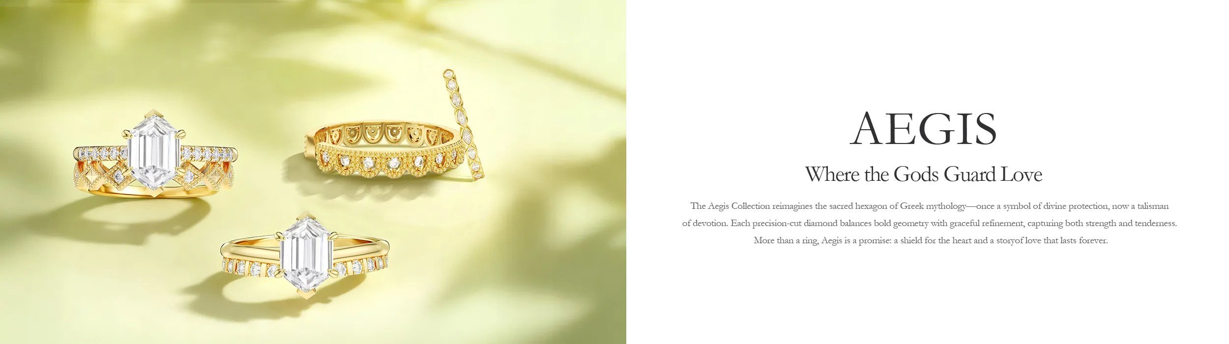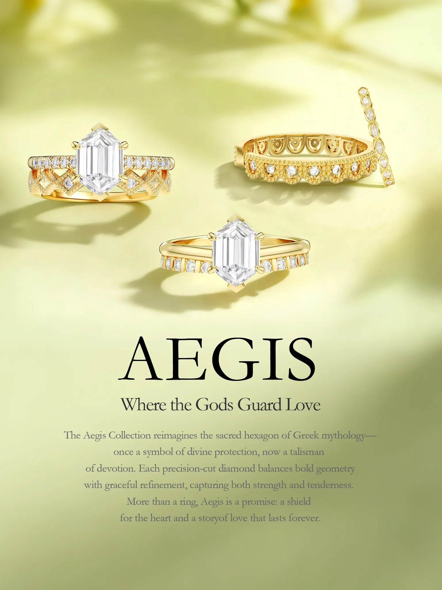 Hexagon Cut Bridal Set with Baguette Diamond Band
