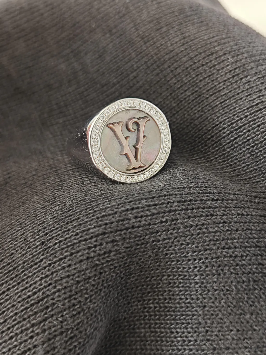 Celebrate your journey with the Initial J Ring. Designed with shimmering black mother of pearl, a bold Gothic-style “J”, and a lab-grown diamond accent, this handcrafted piece is a tribute to your unique story—expressed with quiet luxury and timeless elegance.