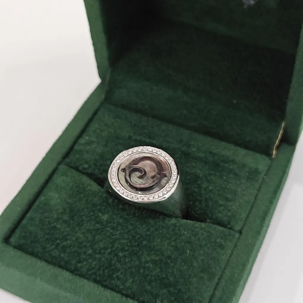 No two rings are the same. The black mother of pearl inlay: