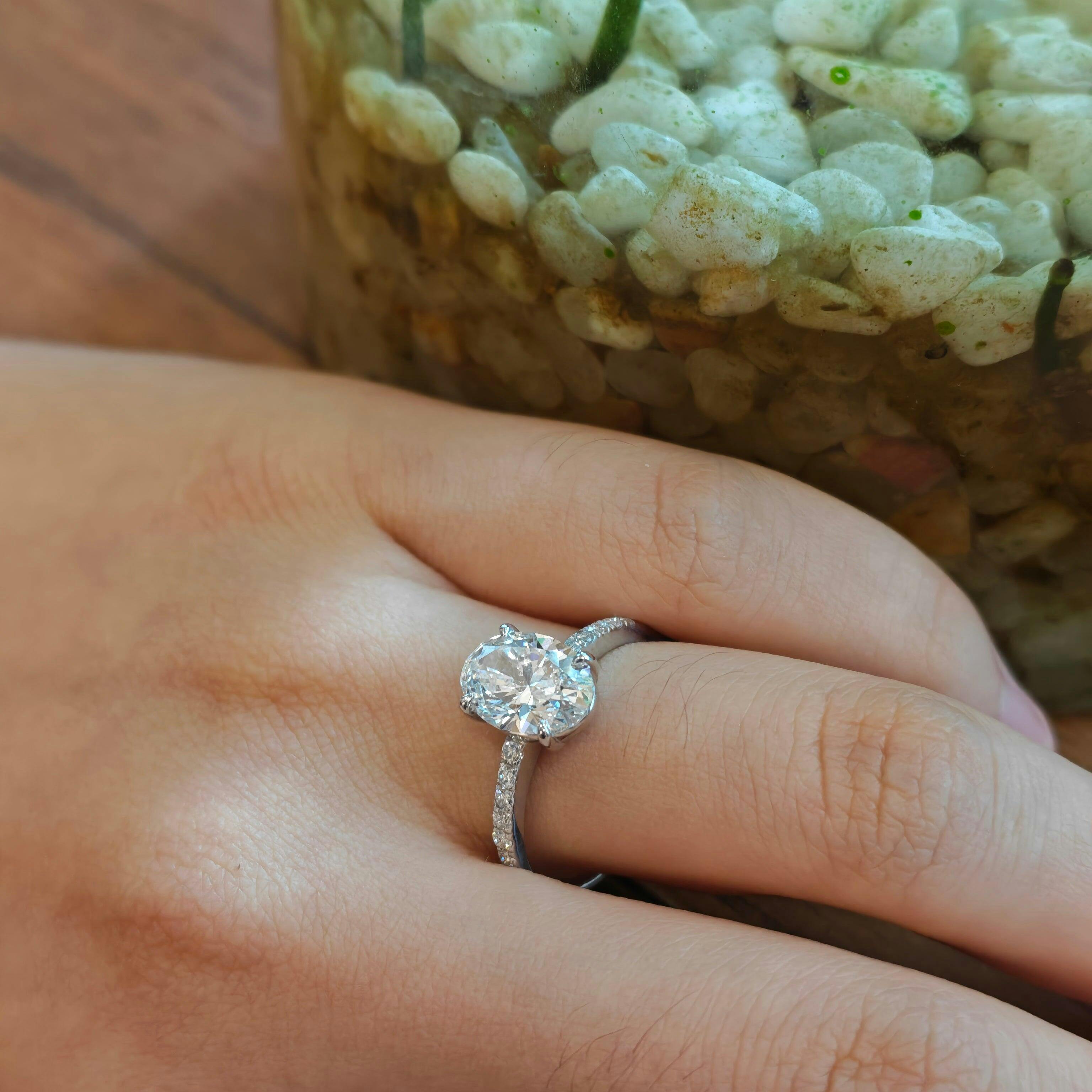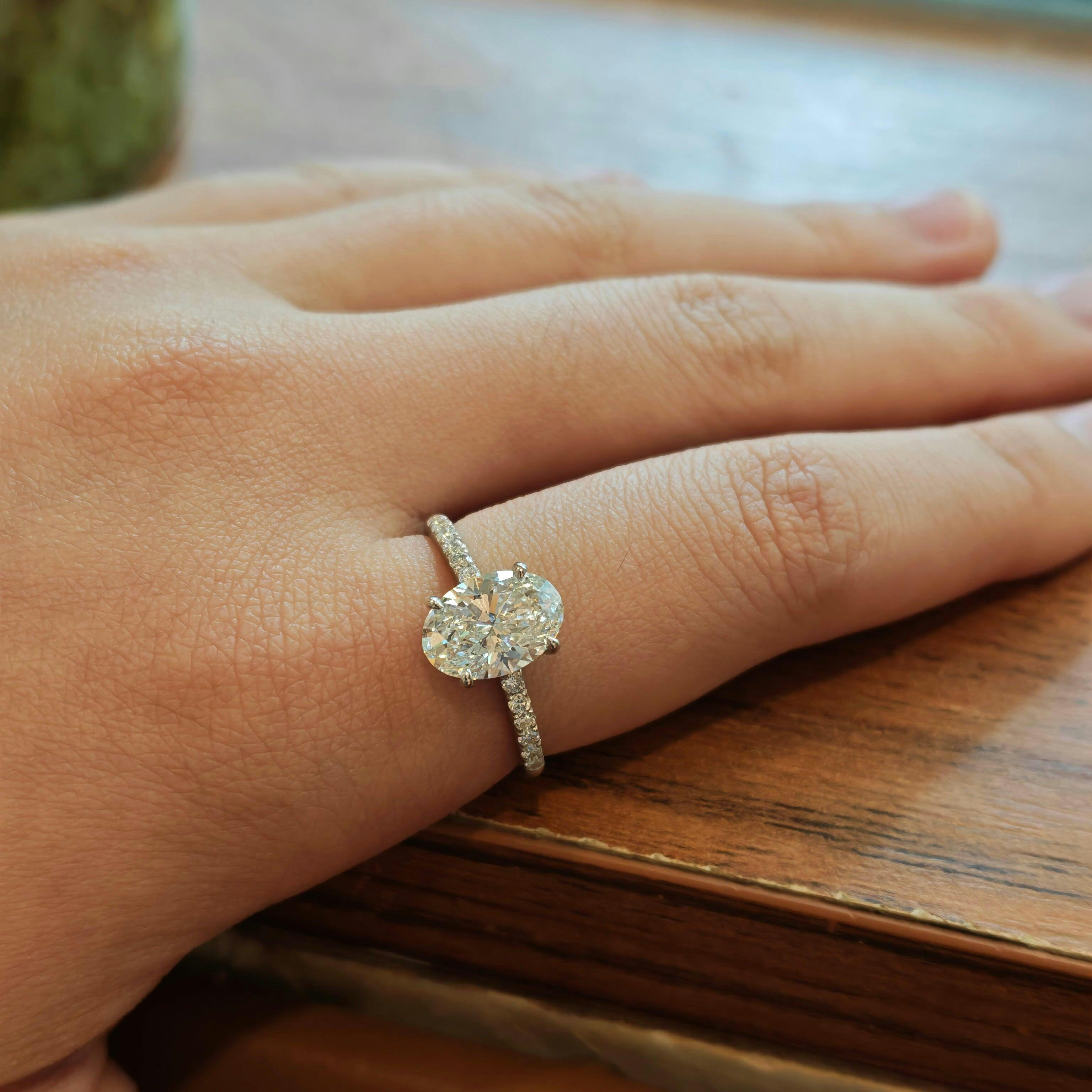 Oval Halo Lab Diamond Engagement Ring with Pavé Band